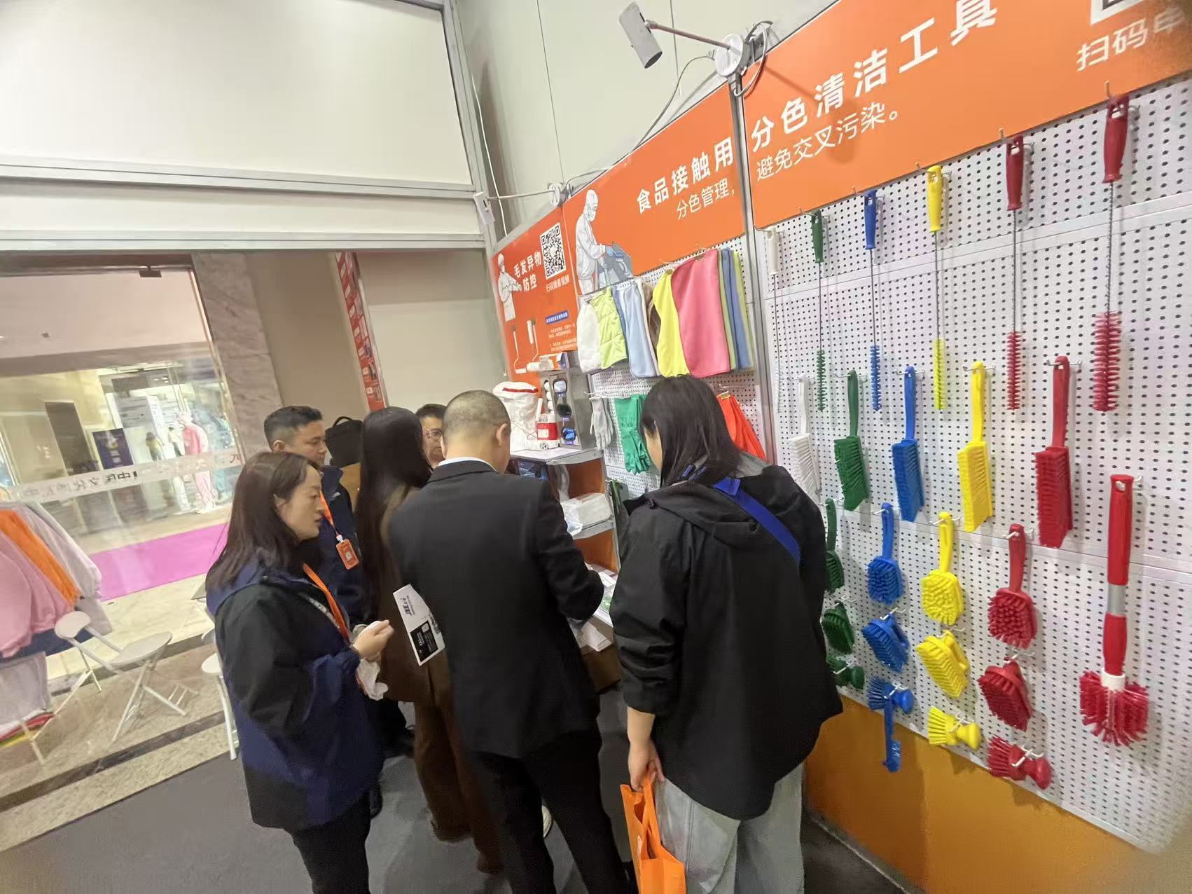 质安选携专业实力亮相武汉客厅B-L07展位,为食品行业呈现兼具品质与实用性的产品及解决方案。展会现场,质安选团队精心陈列各类合规、高性价比的食品级易耗品,其中毛发异物防控全套方案、分色清洁工具管理全套方案凭借创新设计与实操价值,迅速成为焦点,吸引众多观众及食品企业同仁驻足咨询、深入交流,展位前人气旺盛。此外,食品工作服、一次性卫生防护用品等全品类产品同步展出,全面彰显质安选在食品领域的深厚积淀与多元布局。