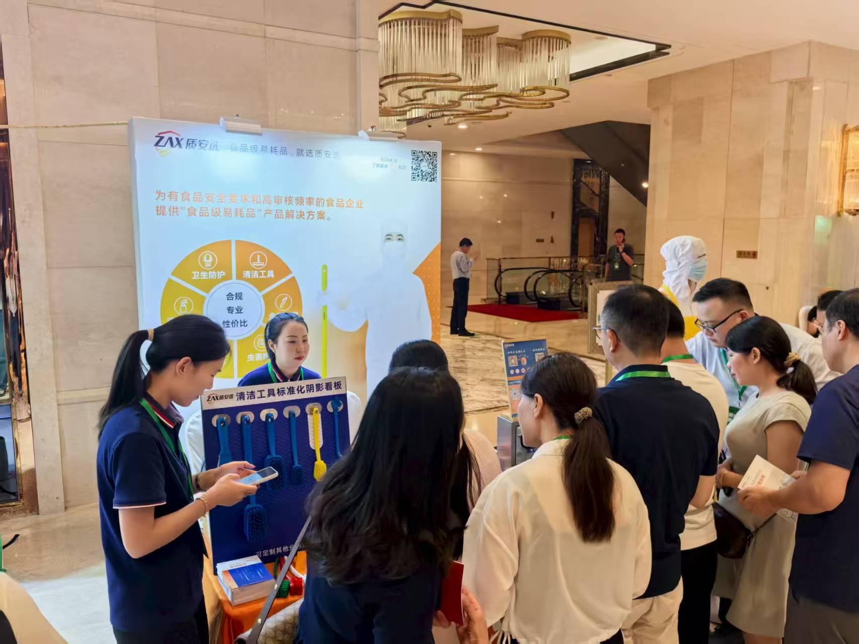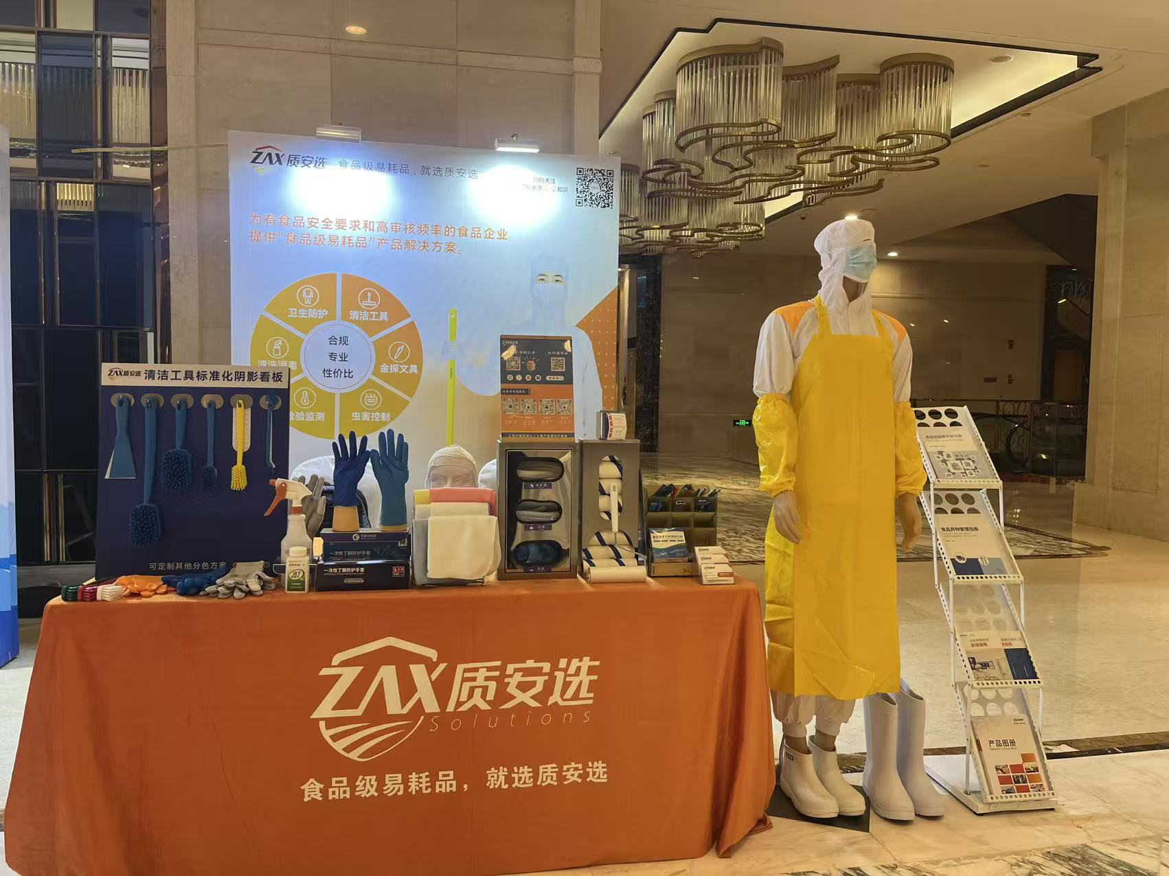 质安选作为优秀参展单位,现场重点展示了创新特色方案——毛发异物防控方案和清洁工具分色管理方案。两款方案均聚焦解决食品生产企业 GMP 常见痛点,同步展出的还有方案配套的系列食品级易耗品,每款产品皆凝聚着质安选对食品安全的深刻理解与执着追求。这些特色产品与方案,不仅彰显质安选在食品安全领域的深厚底蕴与创新实力,更因极强的实用性与专业性,赢得现场一致认可与赞誉。