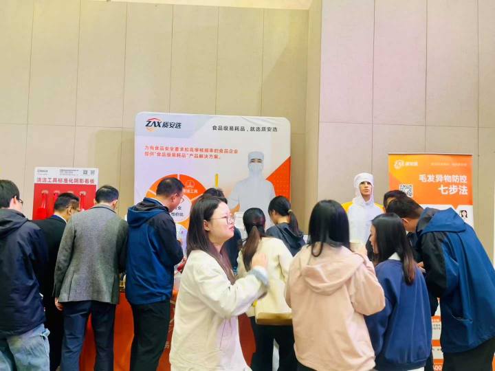 质安选在会议现场为与会嘉宾展示了创新特色方案——毛发异物防控方案和清洁工具分色管理方案,以及配套的相关产品。两大方案紧扣食品企业生产实操场景,精准锚定质量管理核心需求,将质安选深耕食品安全领域的深厚积累与前沿创新能力展现得淋漓尽致。凭借极强的落地实用性与专业针对性,相关方案及配套产品一经展出,便吸引了与会嘉宾的高度关注与驻足围观,收获现场一致认可与好评。